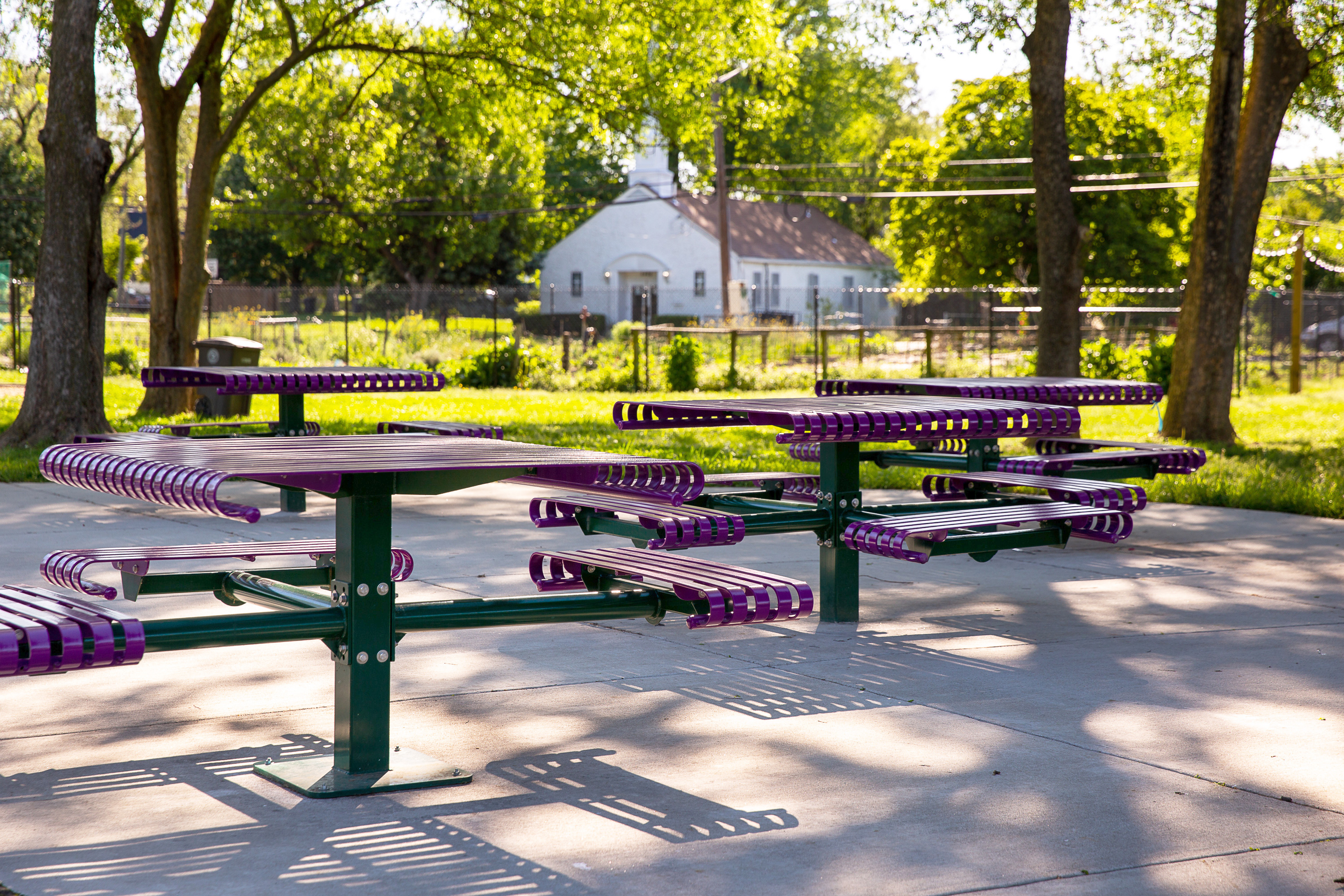The park improvements came in two phases; first the hardscaping such as the stage, lighting structure, ADA accessible seating, and tree plantings, then the play objects and landscaping. Implementation of our design was fully completed in summer of 2020.