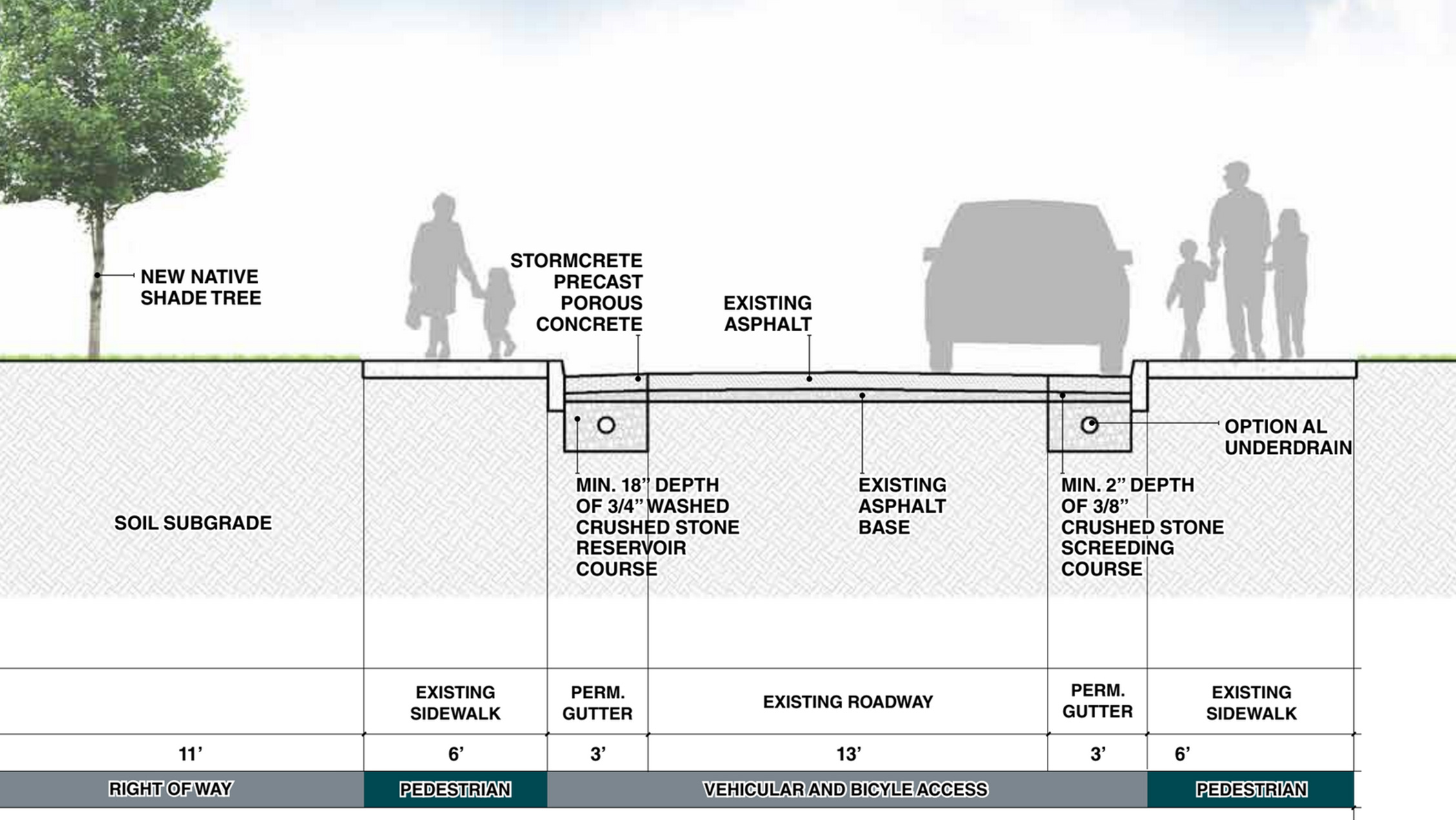 Due to its low-lying location near the Anacostia River, the North Brentwood neighborhood has experienced decades of flooding. The Neighborhood Design Center is proud of our work on the Windom Road Green Street, which addresses these issues through new native plantings, better stormwater drainage, and permeable concrete.