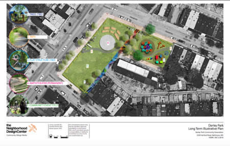 Darley Park is a tight-knit residential community bordered to the west by Harford Road. Community leaders have for years worked on improving the neighborhoods gateways, seeking support for their goal of a community park and amphitheater to replace vacancy and disuse. In 2015, NDC and the 6th Branch, a veteran-led service organization, were asked to partner with Darley Park Community Association and BUILD to provide support to turn a large vacant parcel on the eastern side of the neighborhood into the community’s vision for a vibrant, multigenerational convening space.
