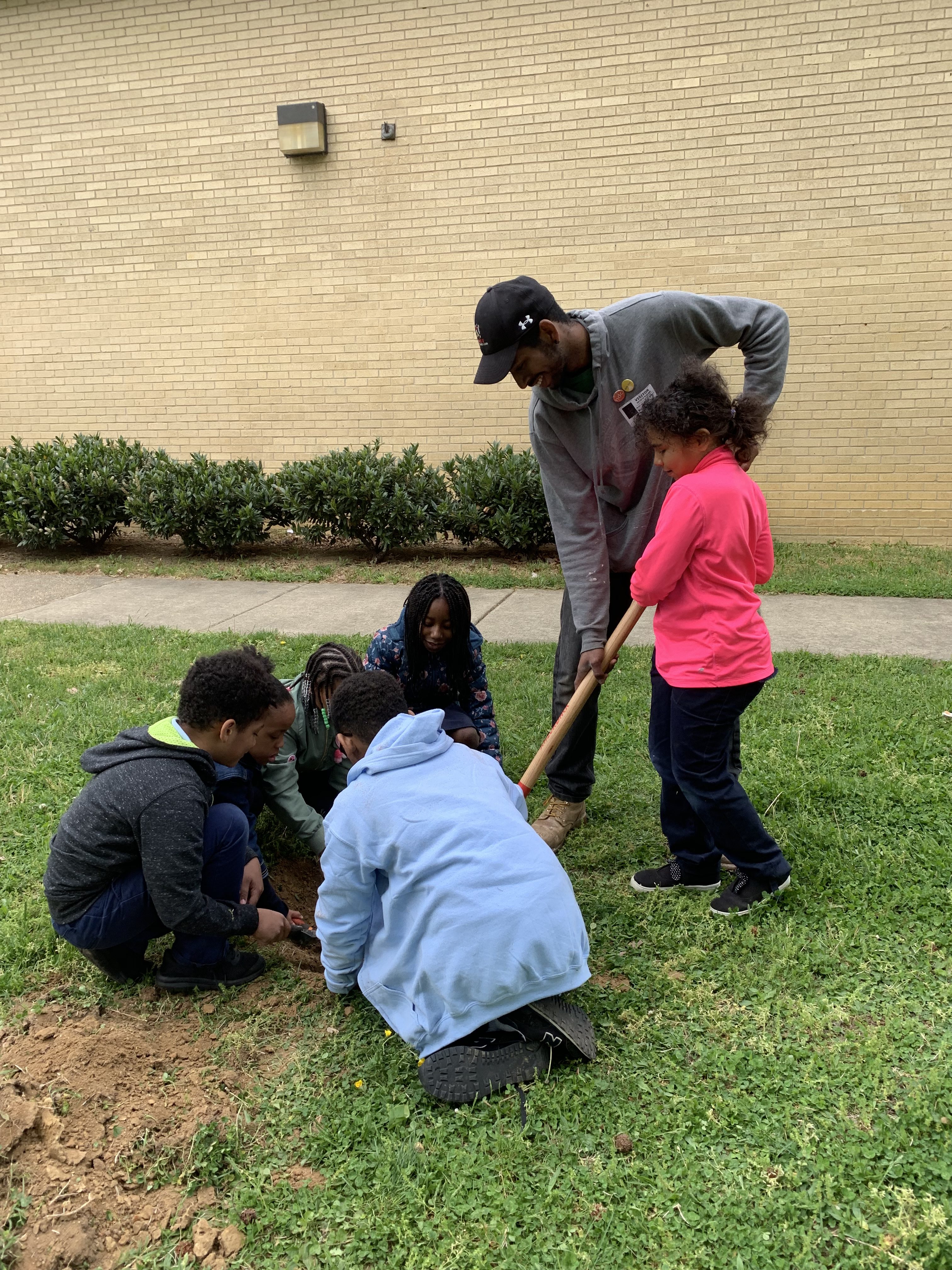 This spring, NDC Staff Laura Robinson and Malik Johnson-Williams went to the Valley View Elementary to conduct a tree planting demonstration for students. The demonstration was to coincide with a number of Earth Day-themed events happening at the school that week. Malik reports on the day of planting, which took place at his former Elementary School: