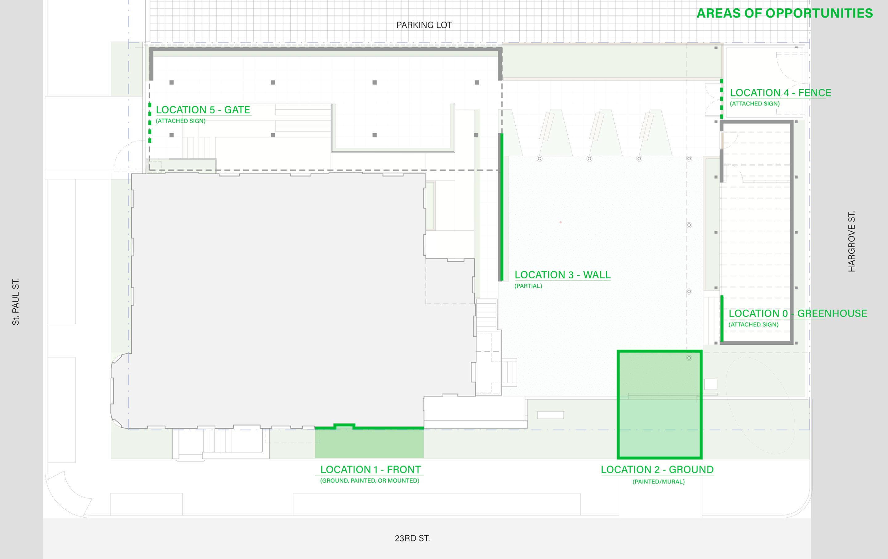 Duong Le and Larissa Hawkins worked with the founder of My Lor Greenhouse, an operational greenhouse in Old Goucher which aims to be both a storefront as well a hub for environmental education in the neighborhood, to develop conceptual designs for signage to help visitors find their way to the greenhouse.