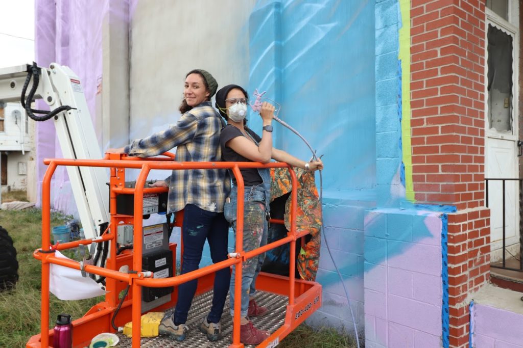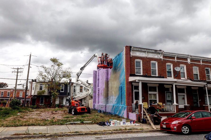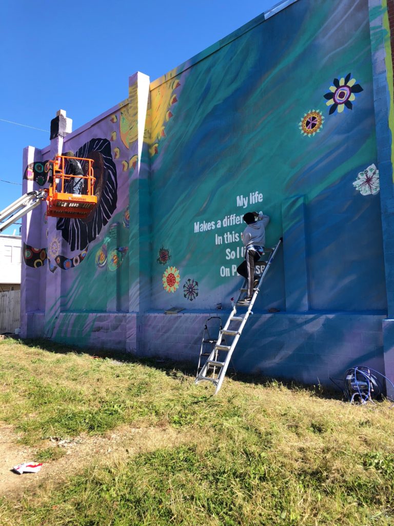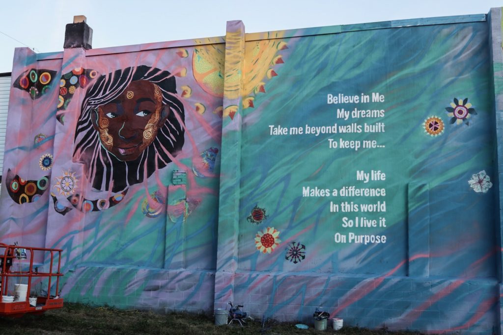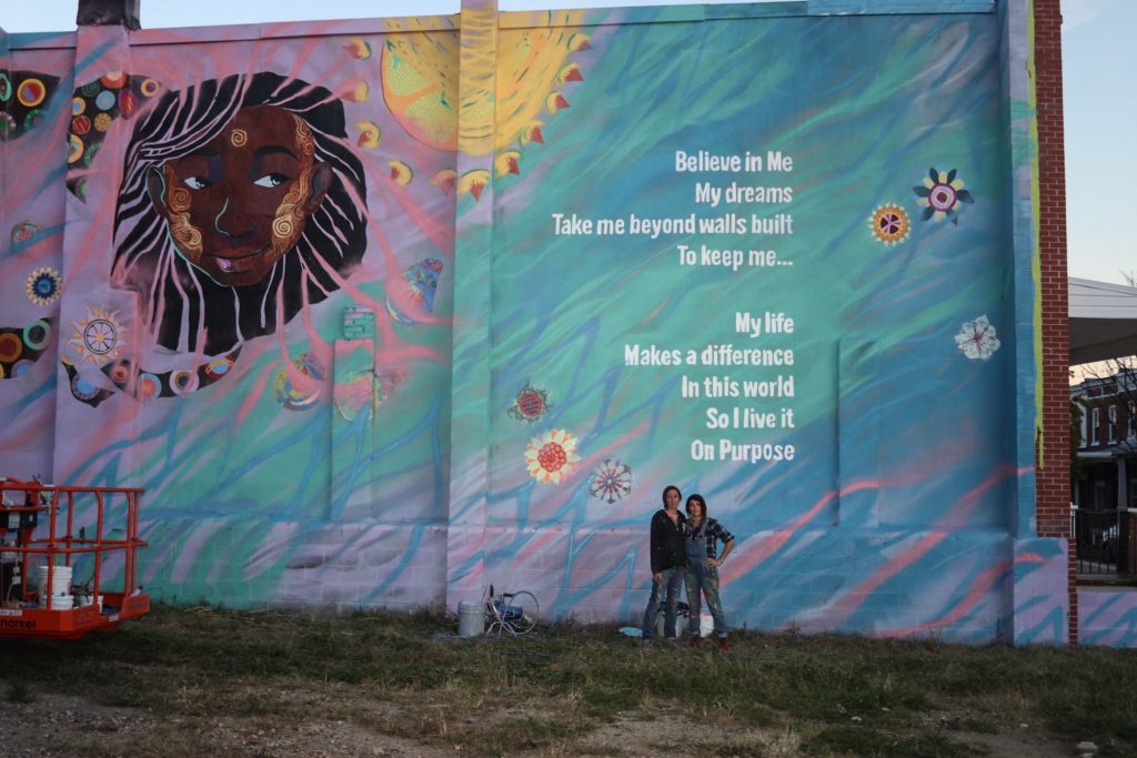 In early November, Artist Whitney Frazier with assistant Crystal Micriotti created a mural incorporating a portrait of a young girl paired with poetry by Mr. Abdullah Moaney, whose home the mural adorns. The mural was made possible through NDC with support from Baltimore Office of Promotion and the Arts, and a team of community members, volunteers and supporters from the Darley Park Community Association and BUILD.