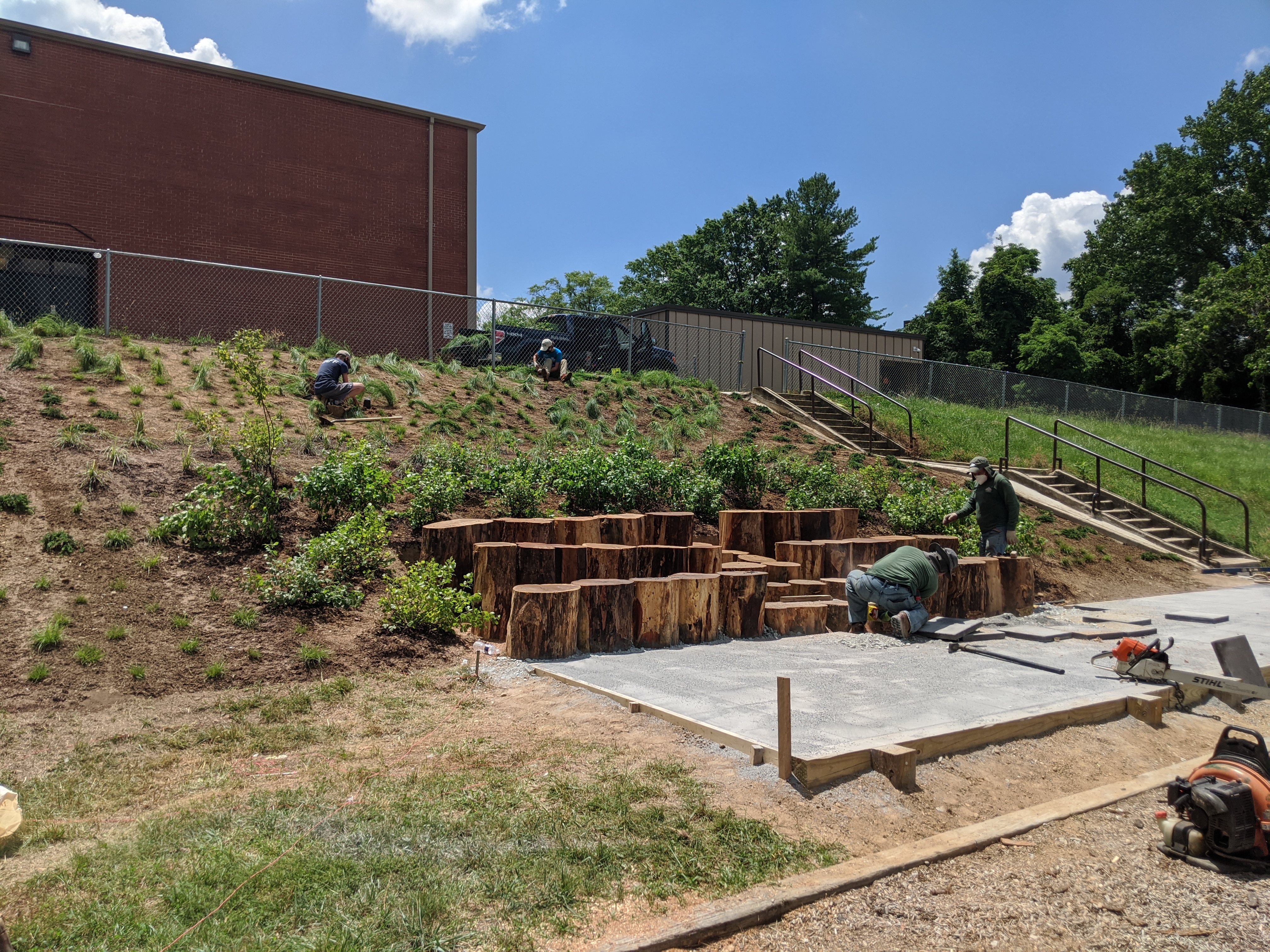 Installation is underway for an outdoor learning area & amphitheater at John H. Bayne Elementary School, designed by the Neighborhood Design Center for the Treating and Teaching Program.