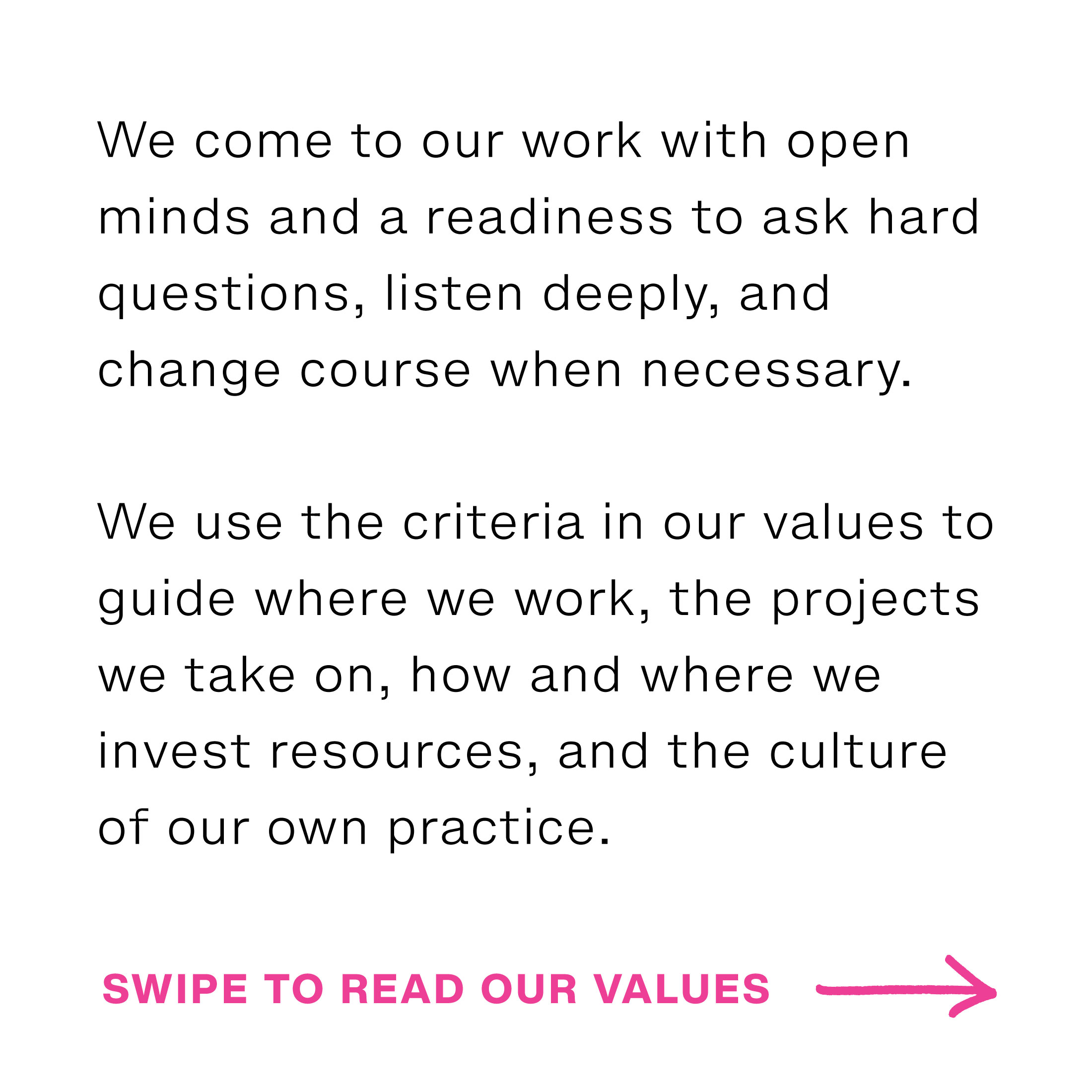 Before we began working in-depth with HGVenture, our DEI consultant, we had a set of belief statements used publicly on our website and in proposals. But we failed to understand that while team members were coming to the work with some conception of values-based process and work, there wasn’t necessarily a lot of coherence around our shared values as an organization.