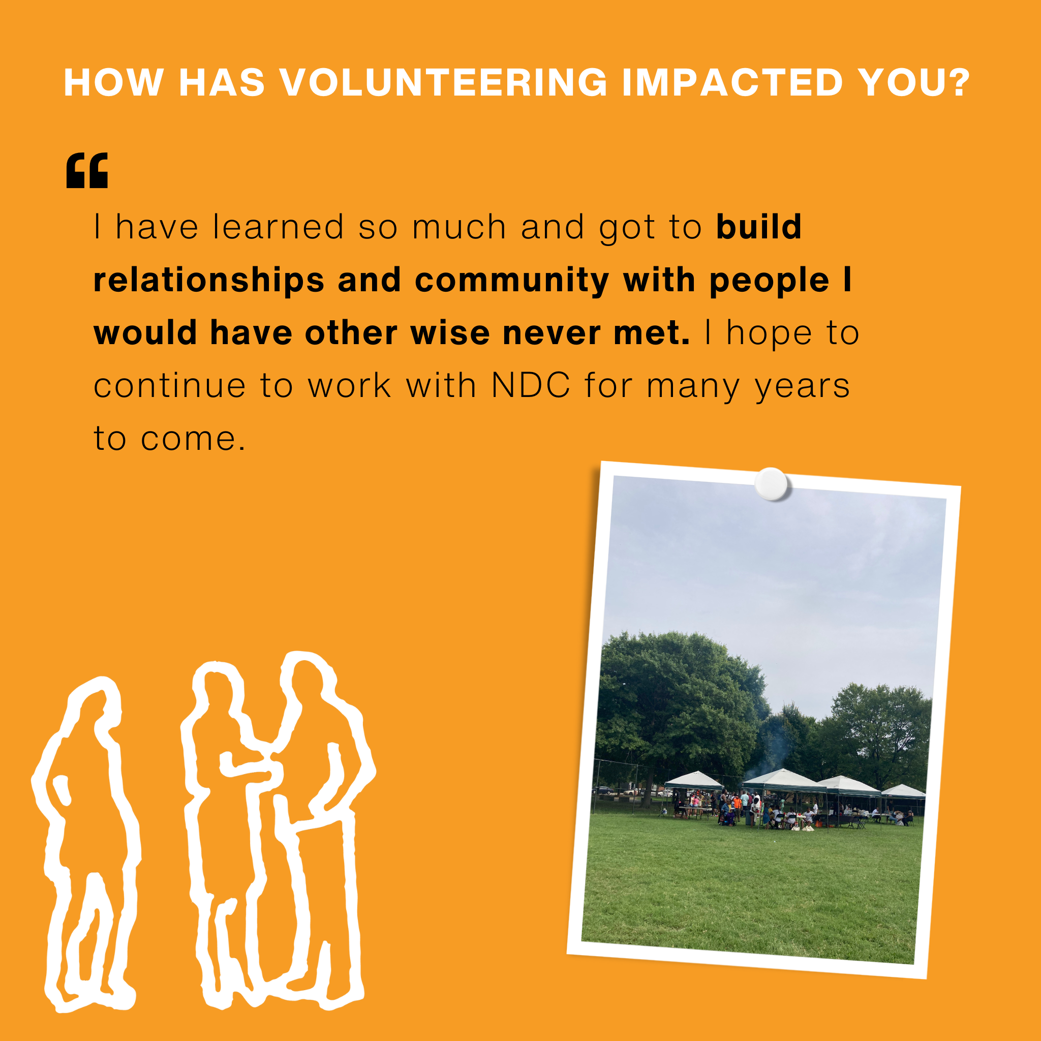 I have learned so much and got to build relationships and community with people I would have other wise never met. Working with NDC has been one of the biggest bright spots in my life this year. I hope to continue to work with NDC for many years to come.