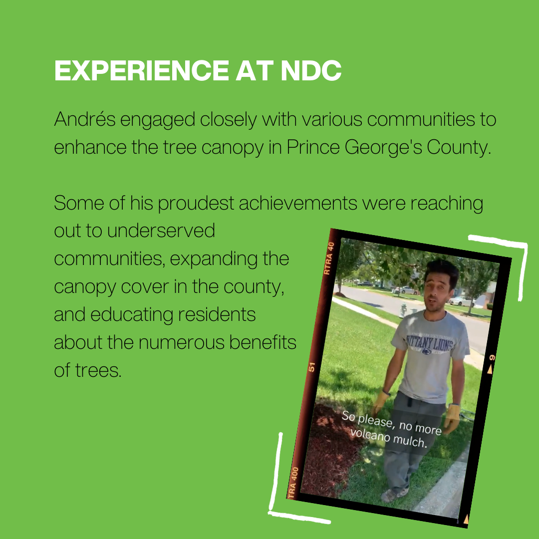 During my time at the Neighborhood Design Center, I had the privilege of engaging closely with various communities to enhance the tree canopy in Prince George’s County.