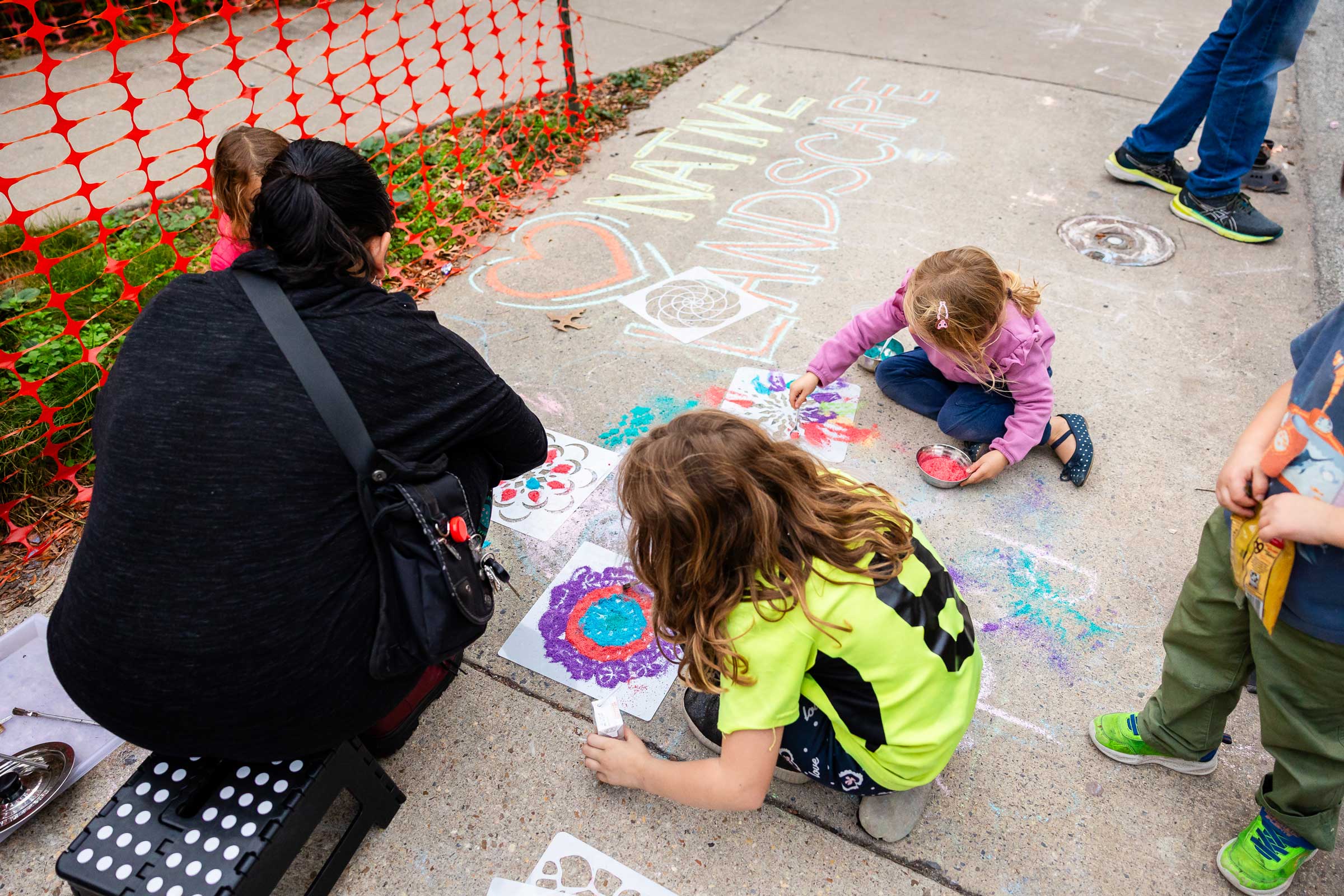 With support from NDC, the City closed the street for a community-led pop-up chalk day on August 27, 2023. More than 20 kids, parents, and passersby used washable chalk to brainstorm themes for a potential Art in the Right-of-Way mural.