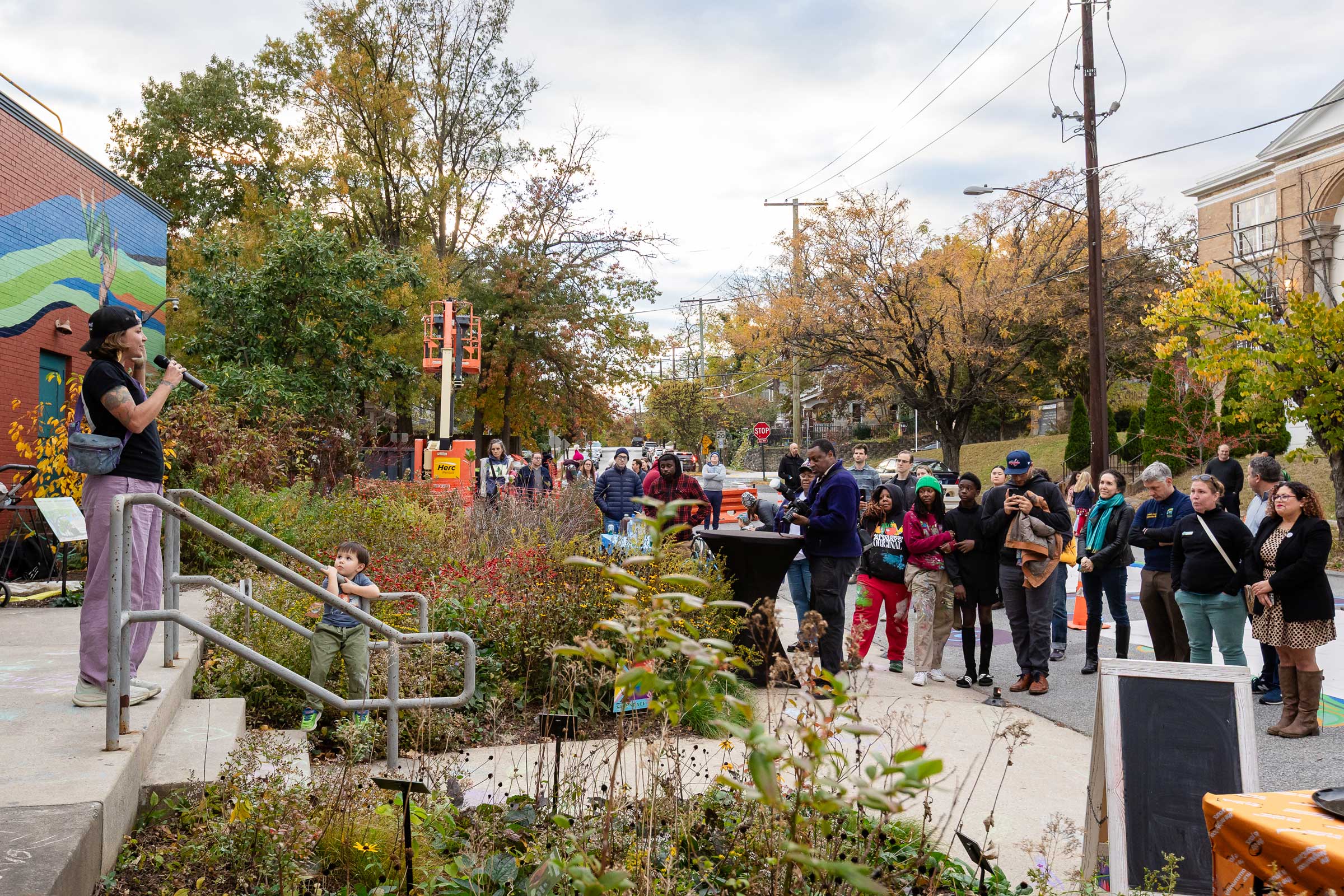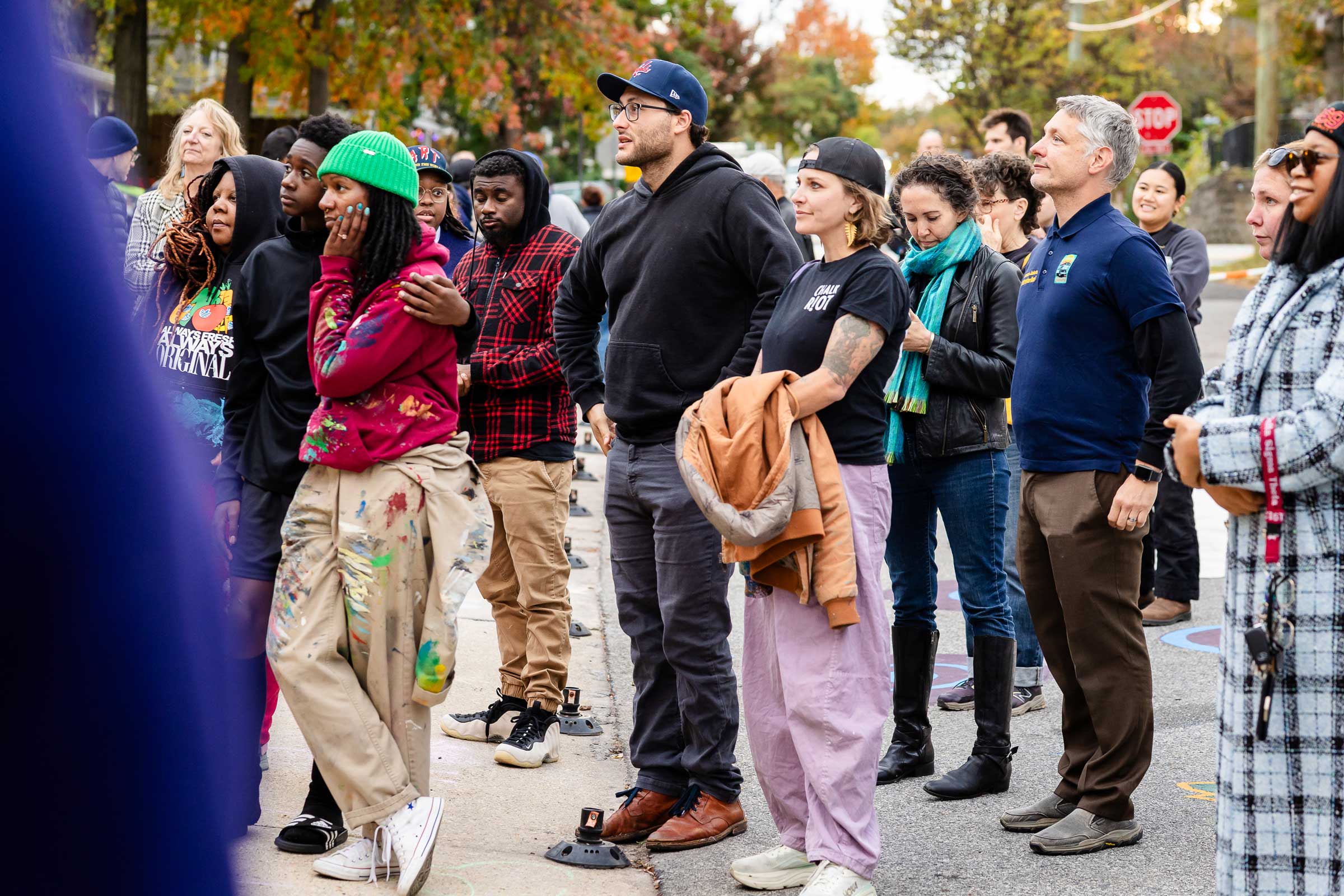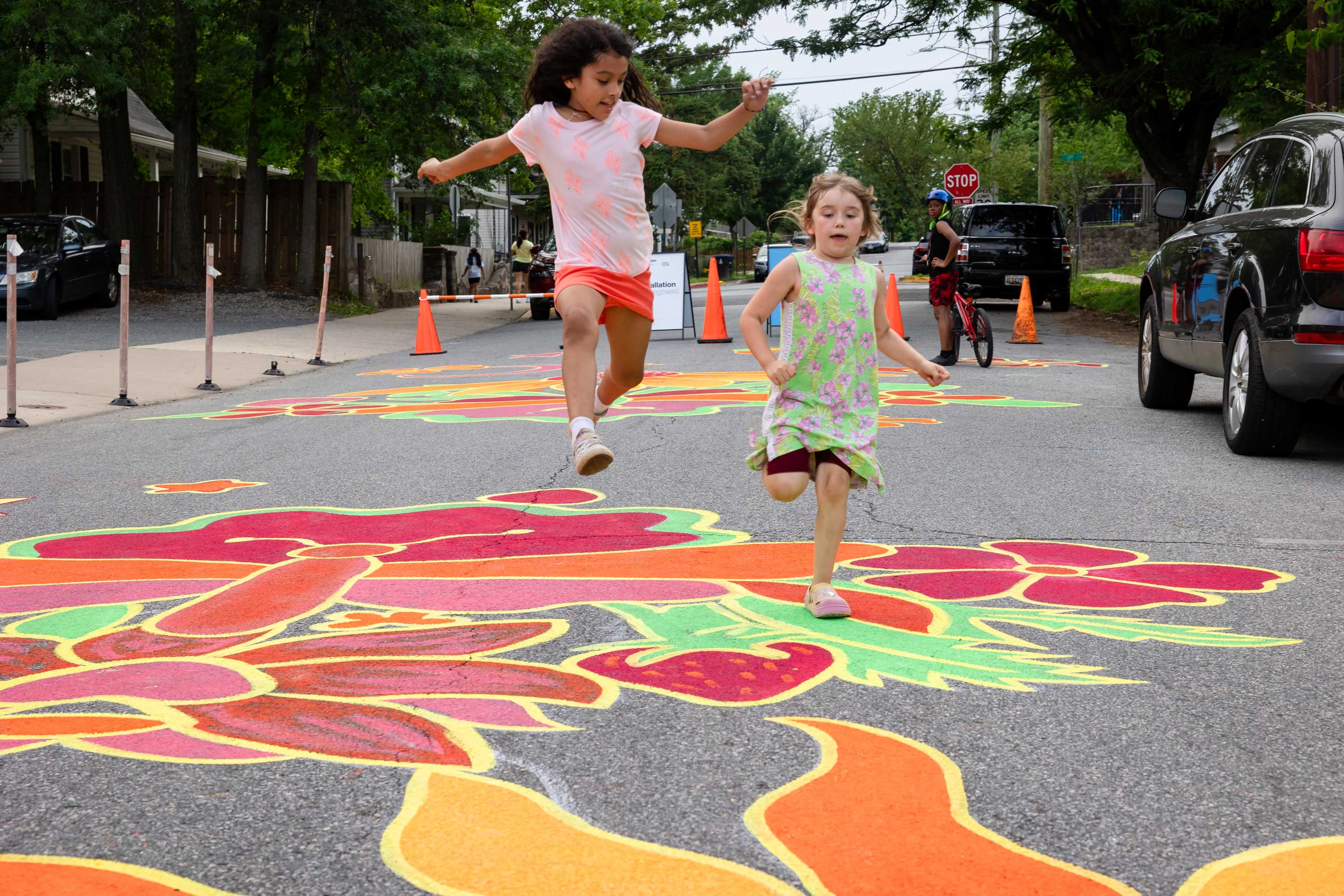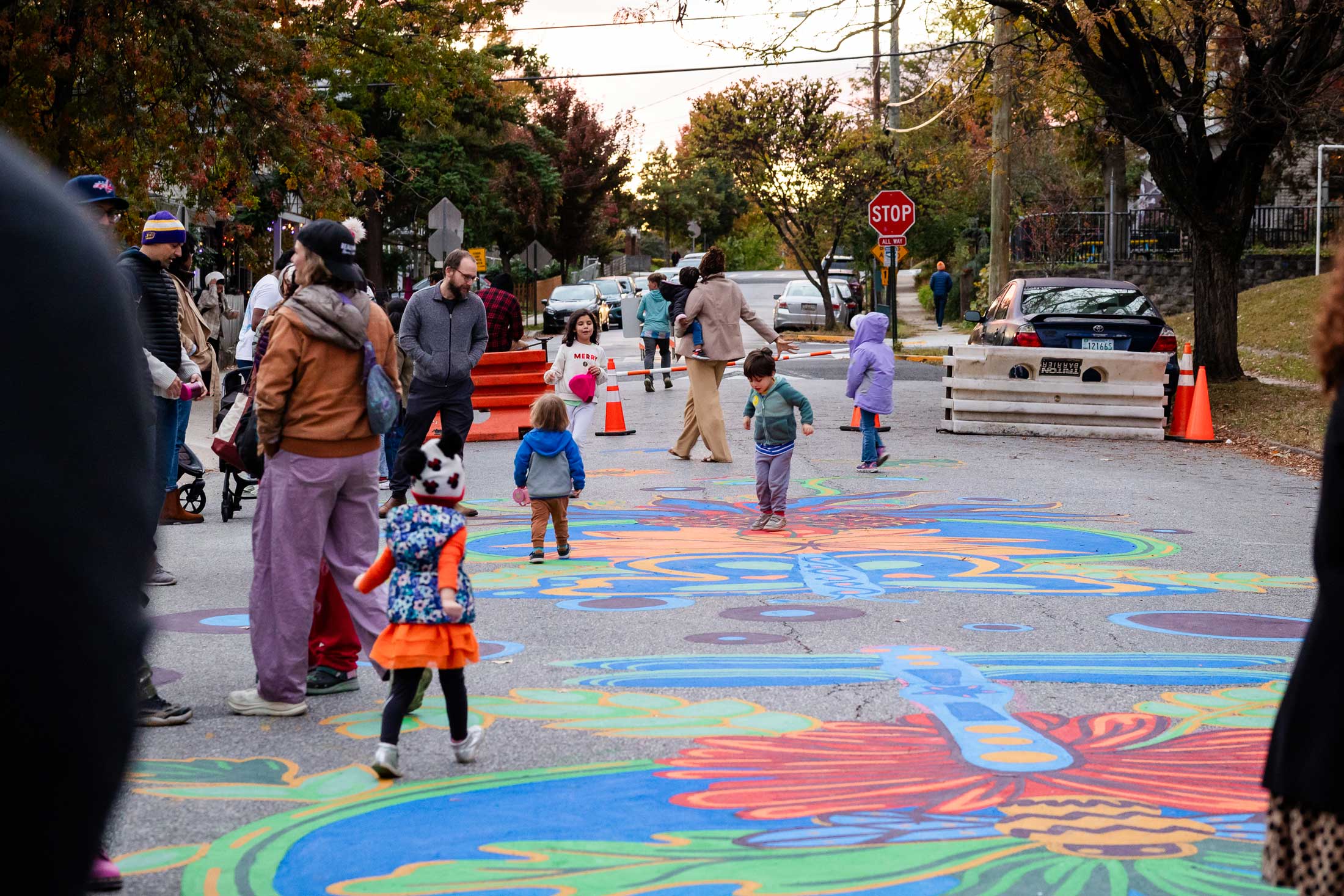 In tandem with the installation, students from Mount Rainier Elementary School met with NDC staff to learn why traffic-calming murals are used, how art influences driver behavior, and what role young people played in shaping the design. A public celebration and mural unveiling on October 24, 2024 honored community collaborators and the youth contributors whose drawings and votes informed the finished piece.