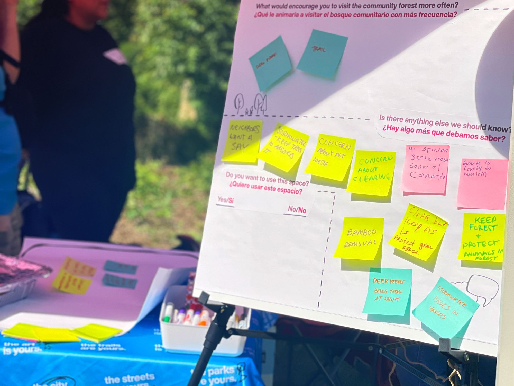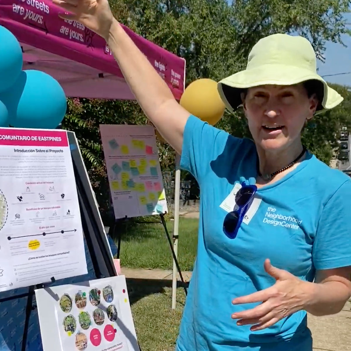 This short video shows NDC Project Manager of Landscape Design Jenny Smeltzer at an East Pines pop-up event, walking us through the community engagement aspect, displaying easel boards of the forest site, visual inspiration, and questions gathering resident feedback via sticky notes.