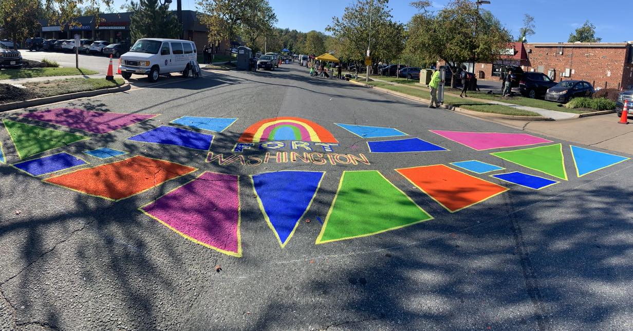 Over 400 attendees joined the Fort Washington Forward Festival, with dozens of residents—including children from the Washington Area Bicyclist Association’s bike safety class and long-time neighborhood elders—participating in painting the mural. Conversations at the site centered on how public art can impact driver behavior and foster a sense of local identity.