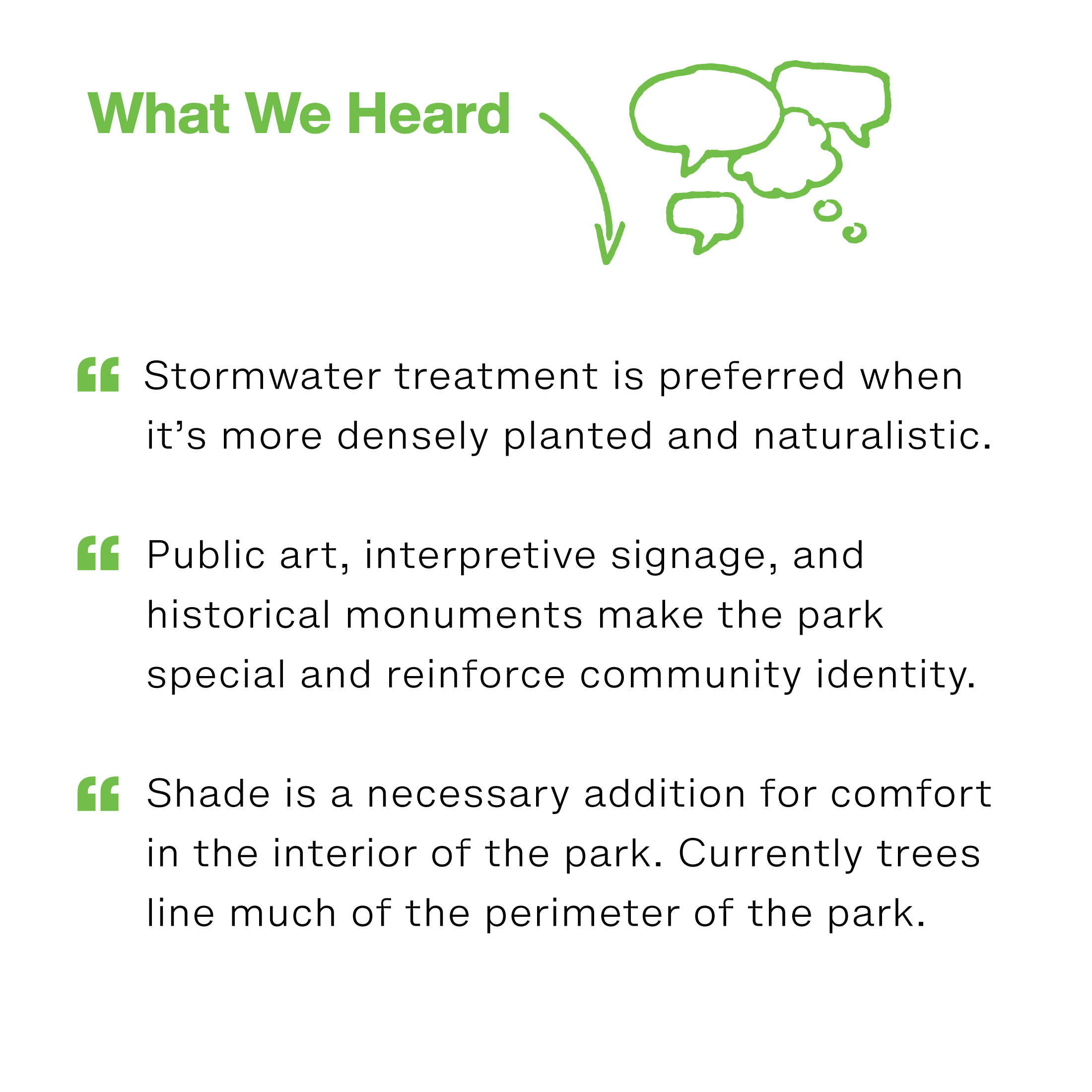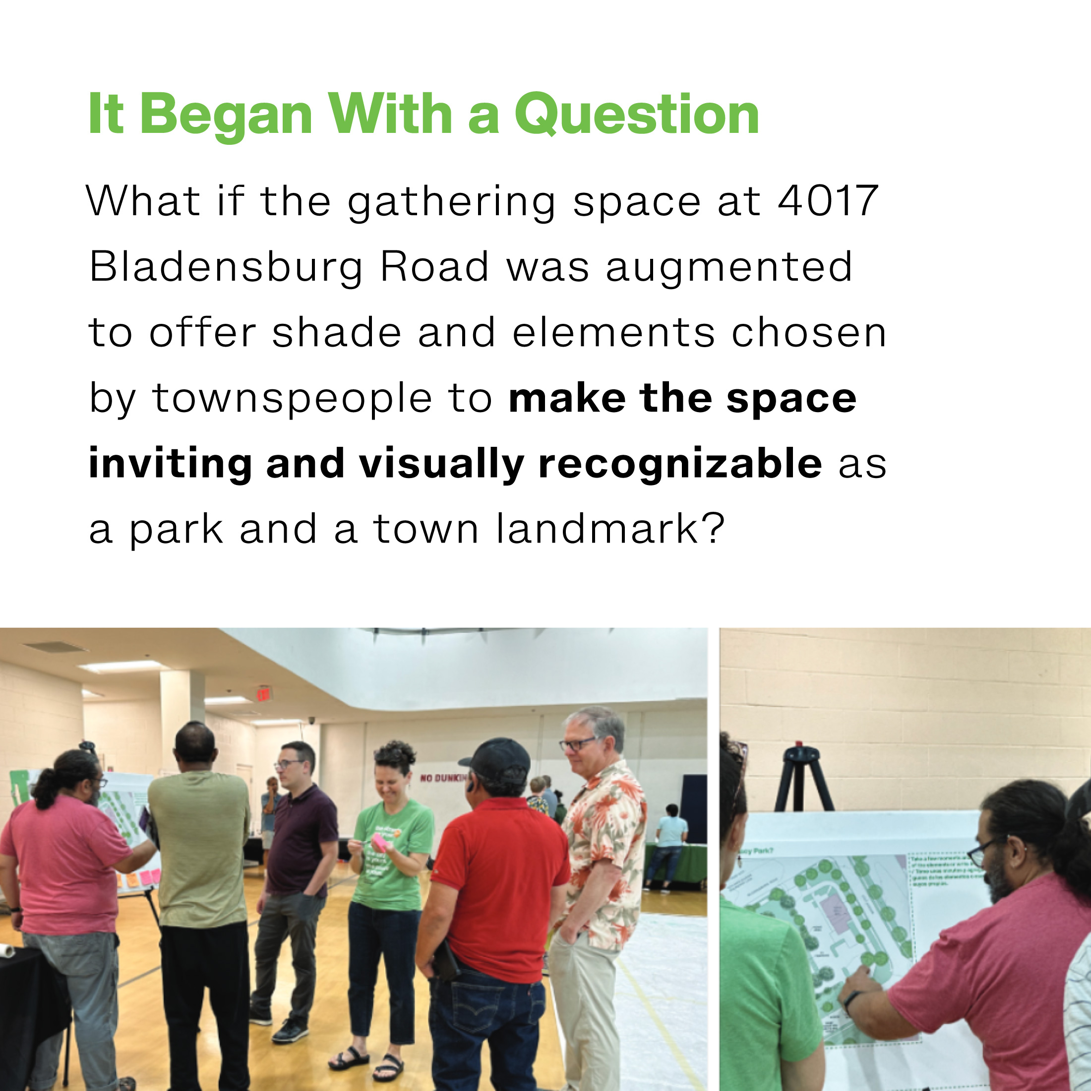 We partnered with the community to increase tree canopy and green space via environmental education walks, tree planting events, and the designs that transform neighborhood vacant lots into vibrant, accessible gathering areas that filter stormwater.