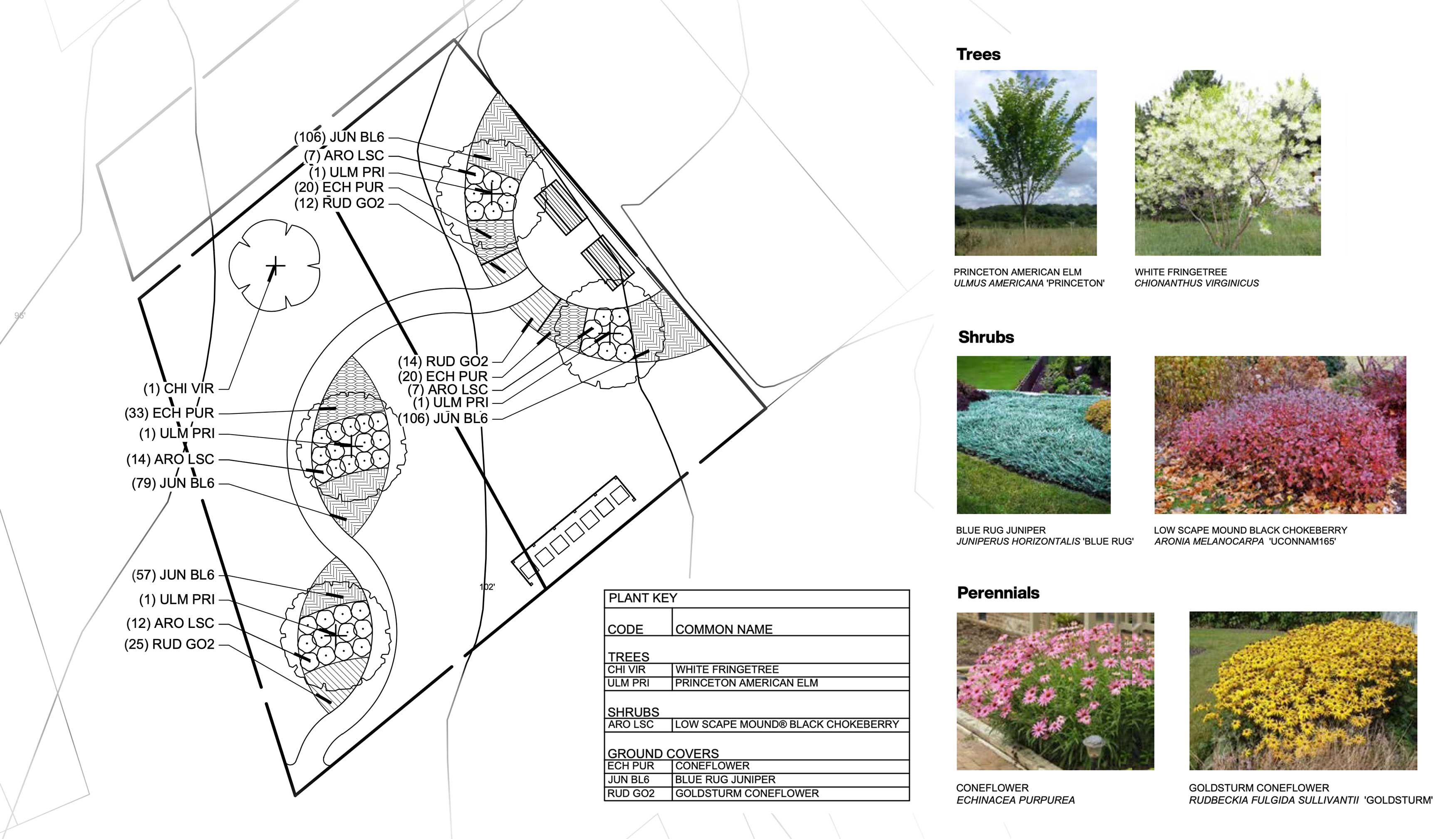 We provided examples of short term and long term features, planting recommendations, and grant resources to help secure funding and pave a path to implementation.