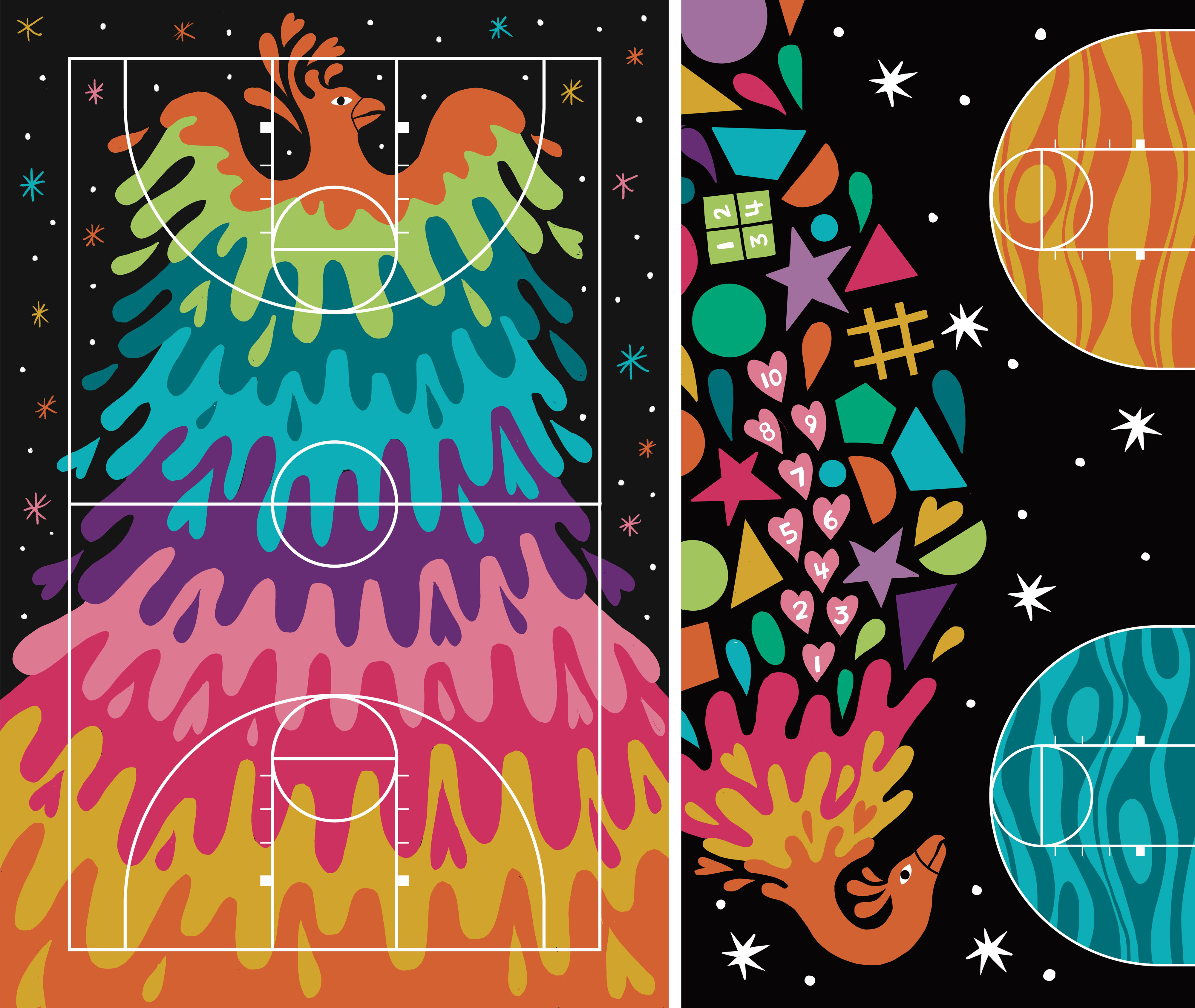 The bright and vivid artwork designed by 3 Ring Studio celebrates the phoenix, symbolizing the re-emergence of positive energy and possibilities in the Phoenix Run community.