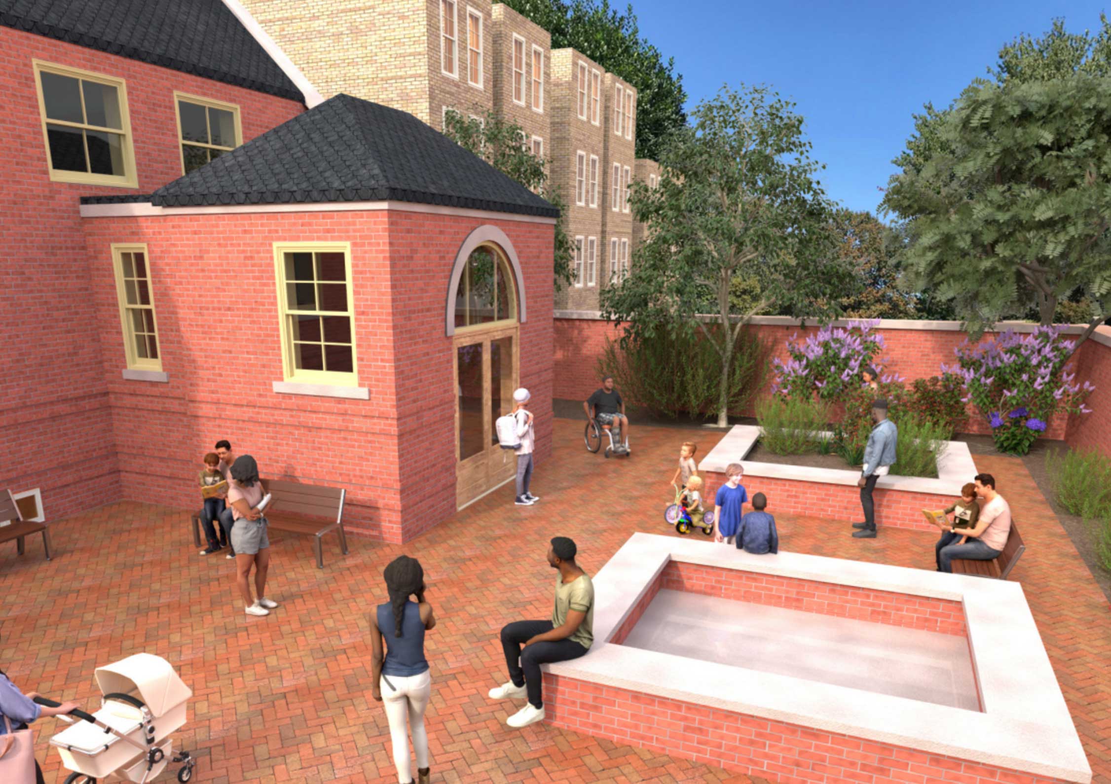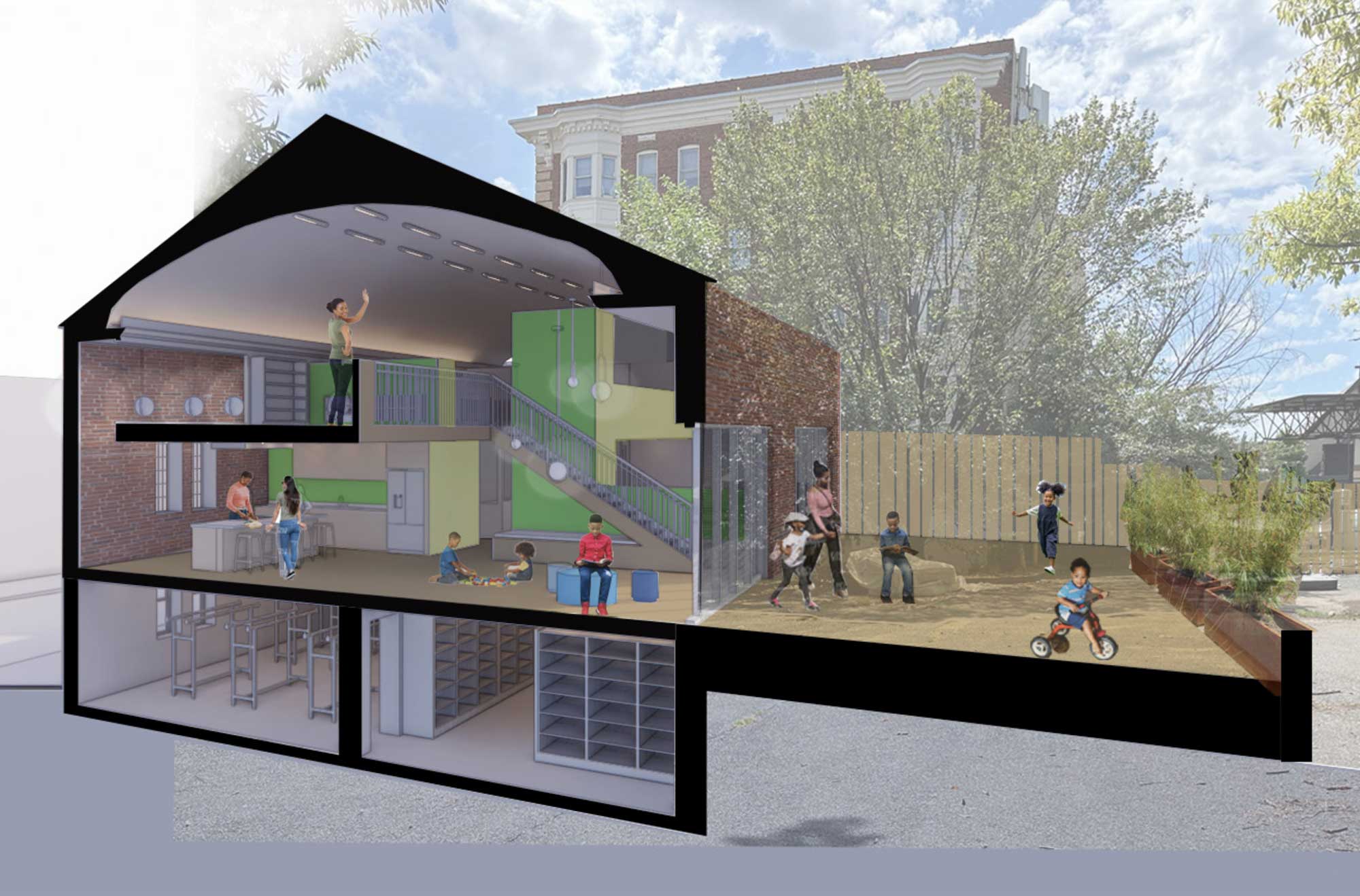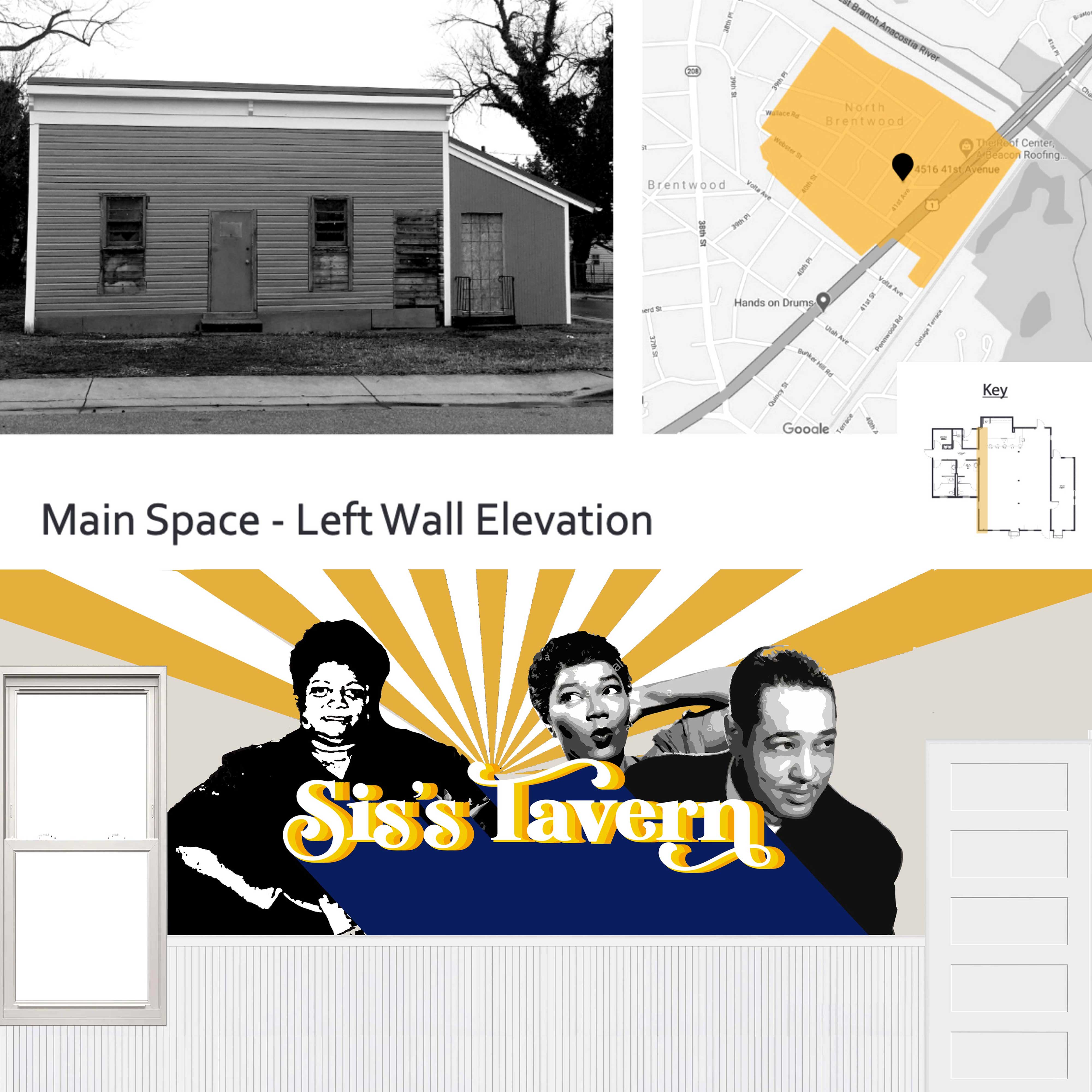 The Neighborhood Design Center provided interior design direction and project management support to help the Town of North Brentwood complete the project at Sis’s.