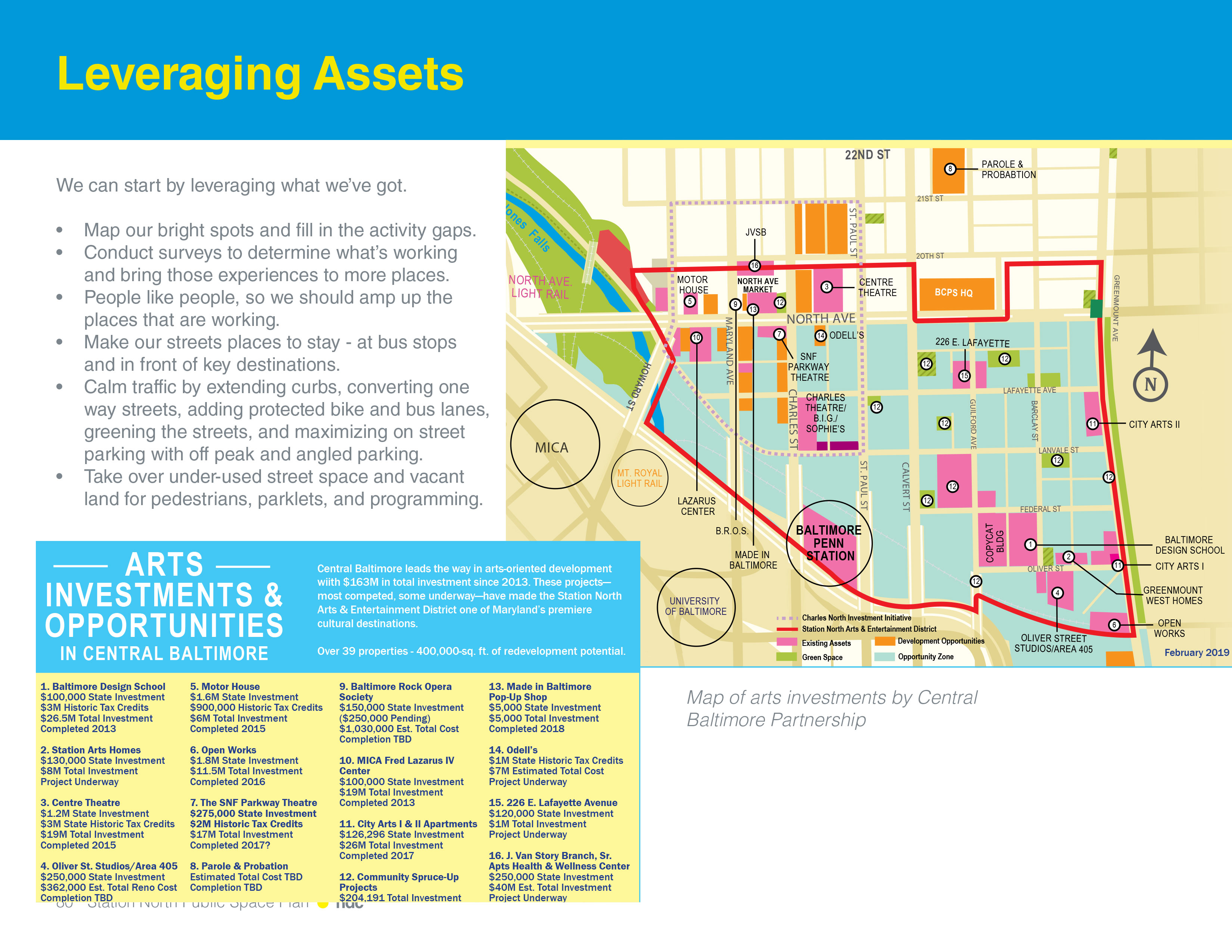 NDC and community partners developed a concept plan for the Station North Arts and Entertainment District, a cultural arts neighborhood in North Baltimore, co-created by stakeholders with deep local knowledge.