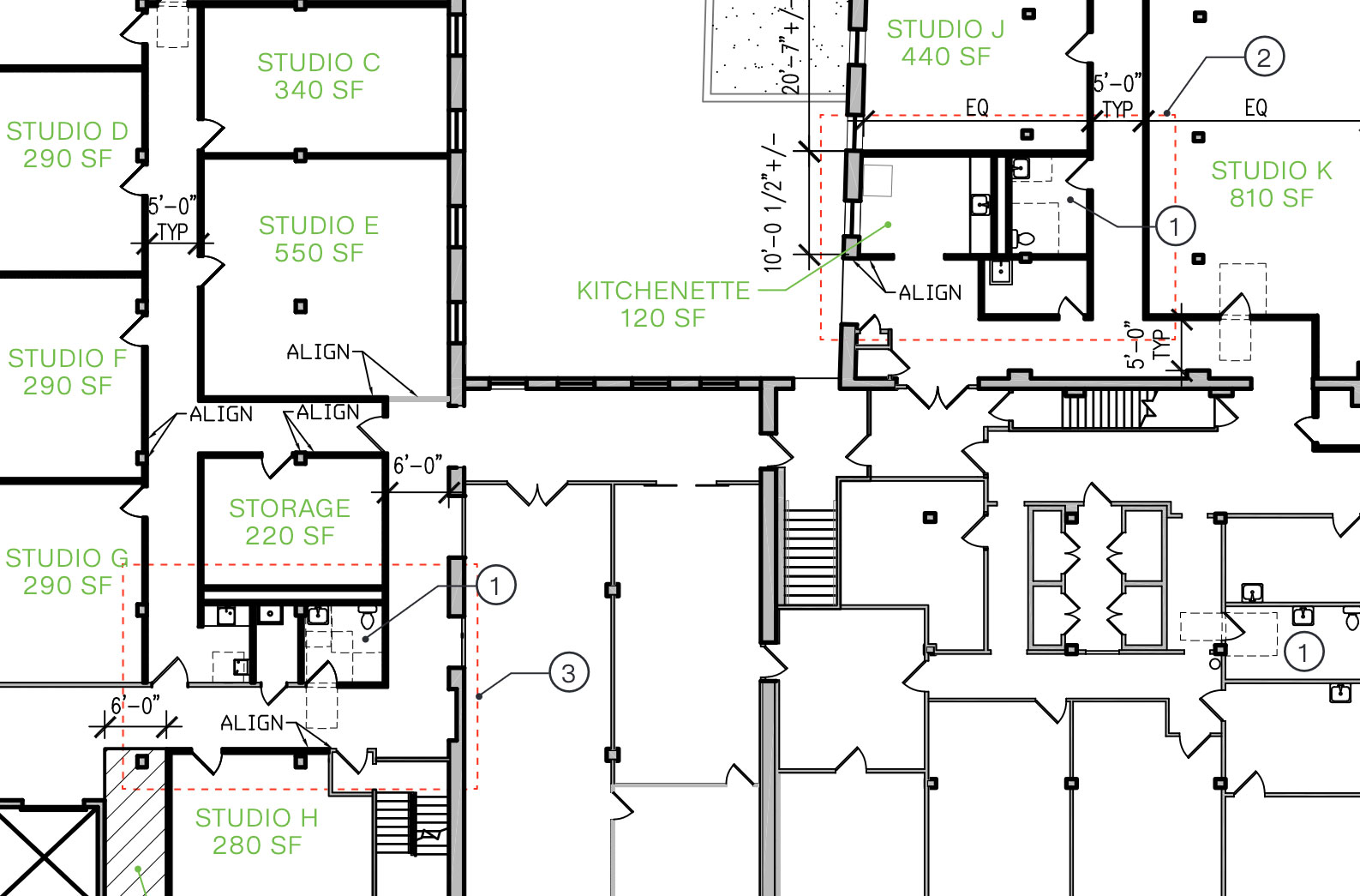 The proposed renovation work includes new signage off of their Calvert Street entrance to cue visitors of their location. The existing bathroom will be modified and expanded to accommodate ADA access. A future second entrance is proposed at the rear of the gallery. This entrance is at grade which will make it accessible and also give the gallery direct access to the rear yard for potential outdoor events. The conceptual design also takes into consideration fire rated separations between the residential portions of the building and the gallery.